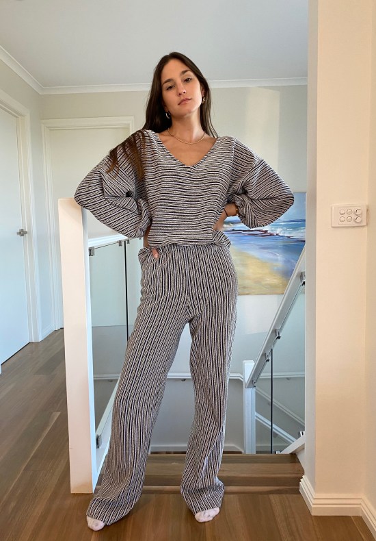 It’s a matching set by Dominique Healy and is ethically made in Melbourne. The material is soft and perfectly comfortable to engage in some lazy lounging – not to mention gorgeous. It arrived the other day and was left in the middle of the driveway. Luckily I wasn’t going anywhere so there wasn’t a chance of running it over with my car. And once I took it out, I wore it three days in a row because it is truly THAT comfortable.