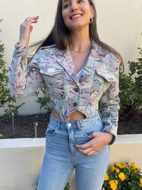 The pièce de résistance of my second look is my mum’s jacket from the late 80’s. Once again, shoulder pads are everything. I love the pastel colours on the quilted fabric. Honestly, where could you find something like this now? The look reminds me of Isabel Marant’s Resort 2021 collection. Actually, I’m pretty sure it was looking through the photos of that runway show that made me remember this old jacket and the fact that I recently rescued it from my dress-up box. Yes, I still have one of those.