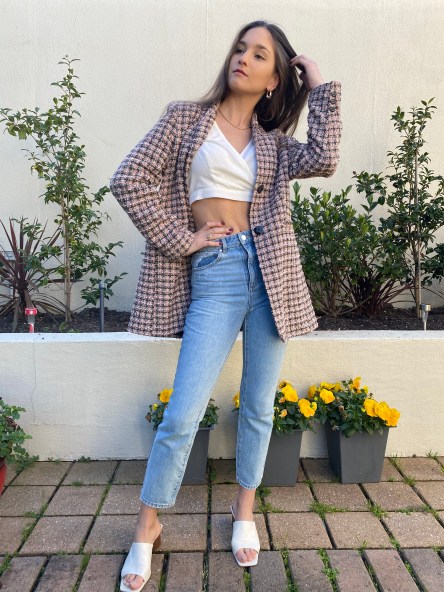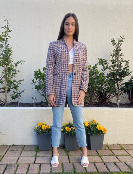 The coat is a little oversized for me, but I’ve worked it with some straight-leg jeans and mules to give me some length. Underneath I’m wearing a simple cropped long-sleeve top from ASOS that I purchased yonks ago. The coat is perfect for warmer winter days and trans seasonal dressing, even if no one else besides my household members can see it for the meantime.