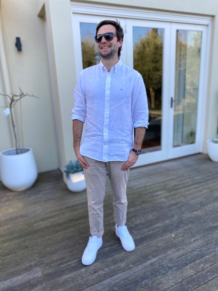 White linen shirts always remind me of summer. Didn’t he model it well!