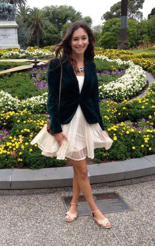 Weather-wise it was not a typical summer’s day, so my lightweight blazer from Portmans kept me warm on top of my navy and cream dress from Dotti. Being the girly woman I am, I love the tulle underlay and I attempted to create a more classic look with my vintage porcelain brooch. I have recently discovered that I own an unprecedented number of brooches of a great variety, so I should probably challenge myself to incorporate them into outfits more often. I think it’s time to bring the brooch back.