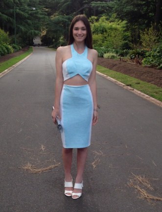 I believe that it is absolutely gorgeous, and it made me think of Grease (look at me, I’m Sandra Dee!) because the outfit essentially portrays women’s fashion in the 50’s. It was a beautiful and flattering decade for fashion. I suppose the flash of midriff is a touch from today’s times.