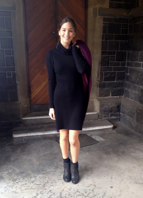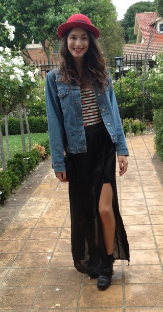 I thought that the creme turtleneck would act as a good neutral between the green, indigo and the burgundy of the bag, as well as to serve the 70s vibes radiating from those jeans. I tossed in the multicoloured Witchery hoops just in case the coat and jeans didn’t make enough of a statement, because why the heck not.