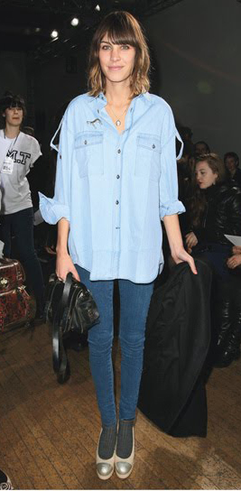 Below-the-knee skirts are also a prominent trend this spring, so why not combine two trends with a tan suede below-the-knee skirt as sported by Alexa Chung.