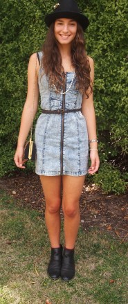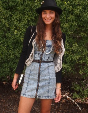 I took note of the ladies’ styles as featured above and combined a white lace top and denim skirt with my suede piece.