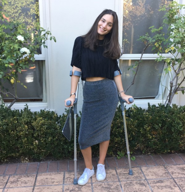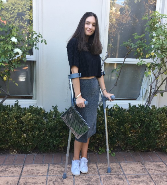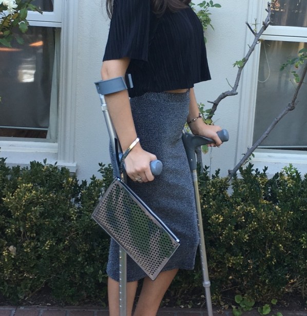 Another bonus with today’s fashion is how my crutches match perfectly with the silver obsession. If everyone was obsessed with gold then it just wouldn’t work and I would be forced to forfeit my membership in the fashion world. But alas, my silver and grey crutches are basically another accessory which marries my outfit together (clearly it’s the small things that get me through the day).