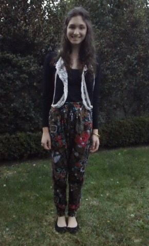 Floral Printed Pants- SportsgirlIt’s like a Party on PantsPrinted Cat Dress- All About Lila This is actually a recent find of my older sister’s, but I couldn’t resist wearing it myself.Yes, they’re cats. Keep calm everybody.