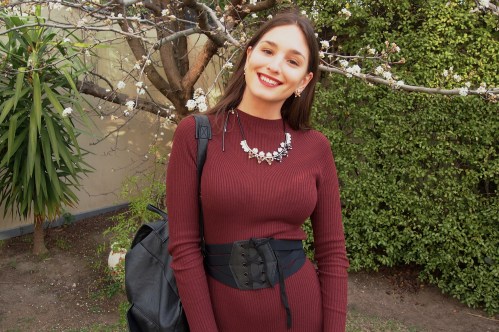 The outfit tied in well with this Mimco necklace that my cute older sister bought me for my birthday. Put it all together with a black corset belt and backpack, and you have a pretty well-coordinated outfit. And talking about corset belts, I am contemplating purchasing a white denim one although I can’t think of what to wear it with, and it’s NEVER a good idea to buy an accessory that doesn’t work with any of your clothes (unless you really love it). It forces you to buy things that will work around it, which is an issue if you already struggle with being financially reduced by fashion.